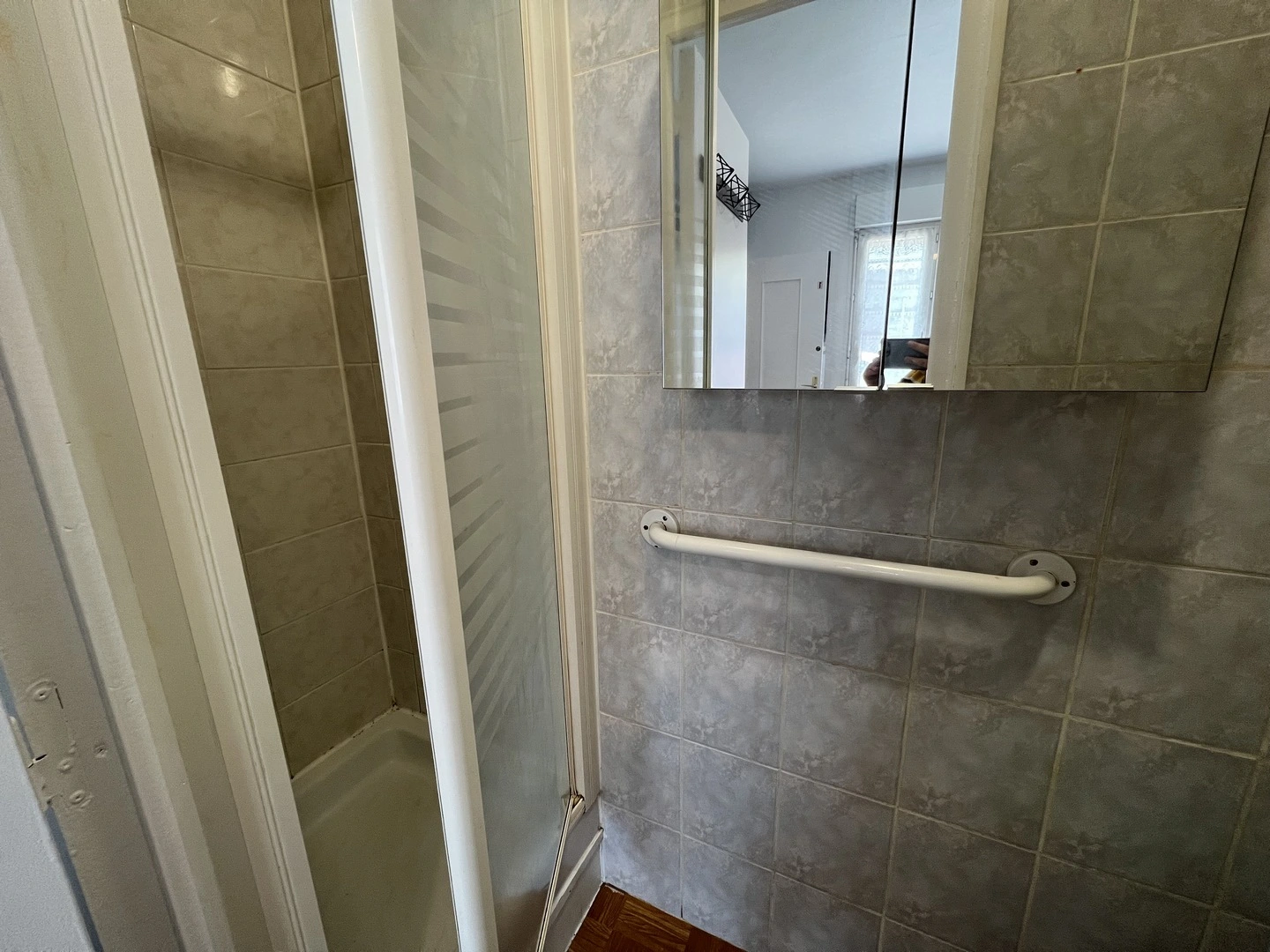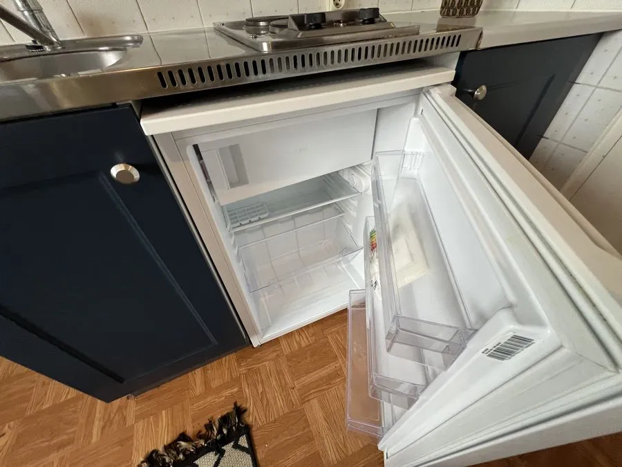 Il se compose d'une pièce à vivre et d'une grande fenêtre en double vitrage avec volet. Les murs sont en fibre de verre peints en blanc et gris. Vous trouverez une cuisine équipée carrelée avec un évier, 2 plaques électriques, un frigidaire, une hotte et des meubles de cuisine hauts et bas. La salle de douche est carrelée avec une vasque, une douche et un toilette.