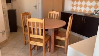 Il se compose d'une pièce à vivre carrelée et d'une porte-fenêtre en double vitrage avec volets donnant sur un balcon privatif. La chambre possède également une porte-fenêtre avec balcon privatif. Les murs sont en fibre de verre peints en blanc et gris. Vous trouverez une cuisine équipée carrelée avec un évier, 2 plaques électriques, un frigidaire, une hotte et des meubles de cuisine hauts et bas. La salle de douche est carrelée avec une vasque, elle possède une douche, un lavabo et un toilette. L'appartement meublé avec goà»t est composé de rideaux, une penderie, un meuble à chaussures, un bureau, 2 étagères blanches, d'un lit double. Le chauffage central gaz est compris.