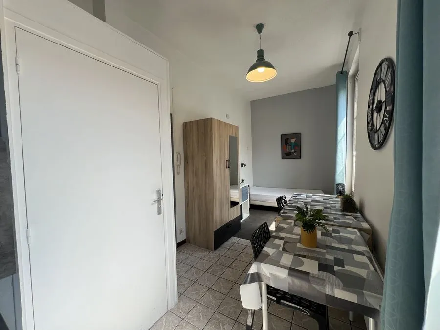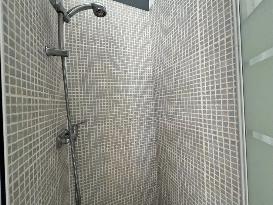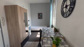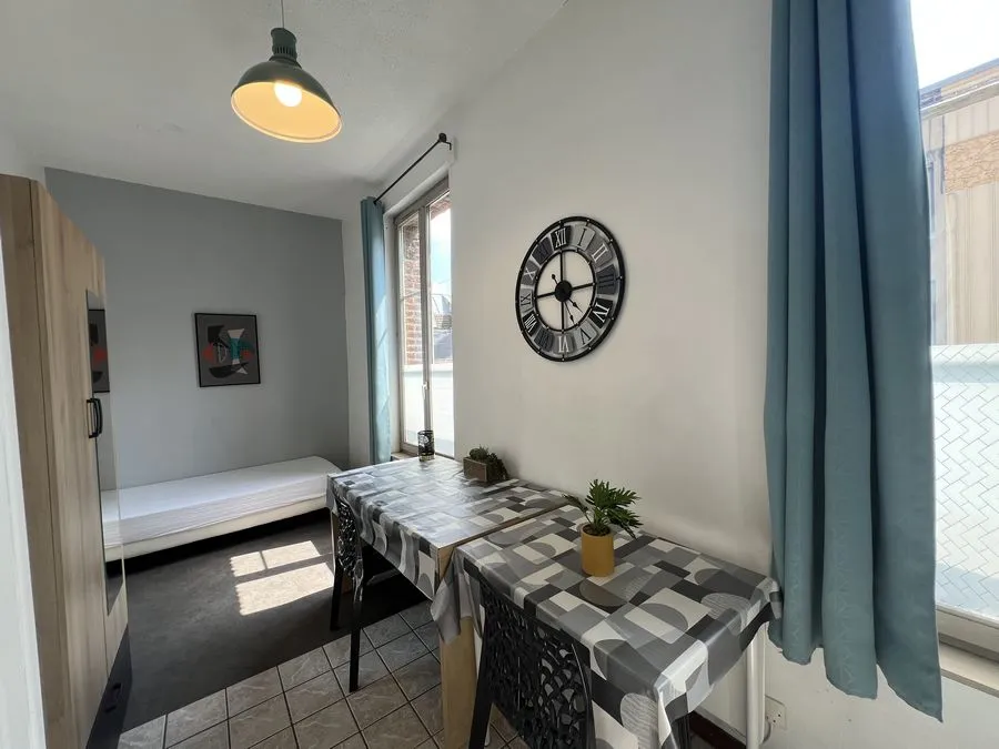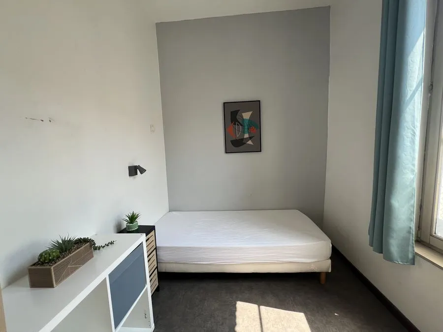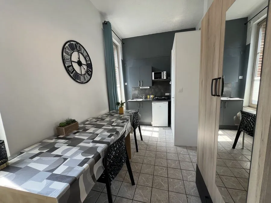Il se compose d'une pièce à vivre entièrement carrelée, les murs sont en fibre de verre peints en blanc et gris. Ce studio est muni de 2 grandes fenêtres en bois. L'appartement possède énormément de lumière grâce à ses grandes fenêtres. Vous trouverez une kitchenette équipée carrelée avec un évier, 2 plaques électriques, un frigidaire, une hotte et des meubles de cuisine hauts et bas. L'appartement meublé avec goà»t est composé d'une douche, un lit simple, un bureau, une penderie, kitchenette équipée, rideaux, une table de nuit bois et noire, une lampe de chevet.