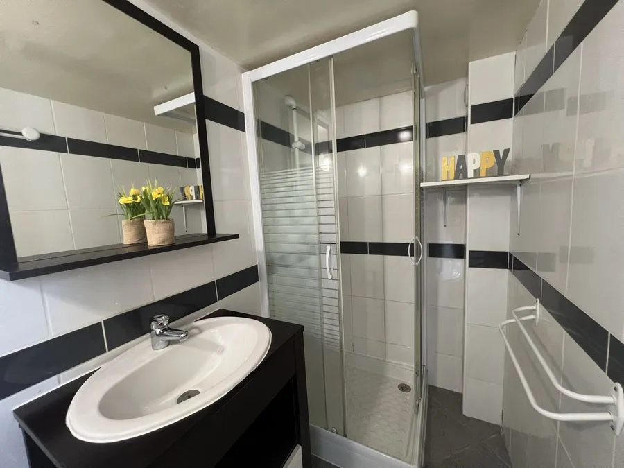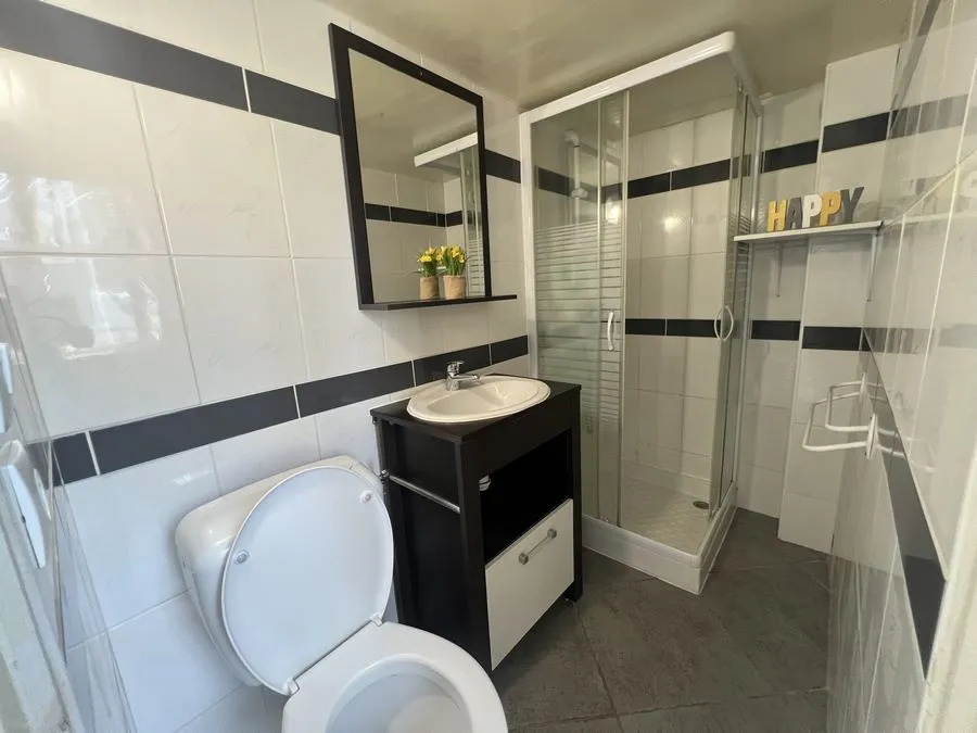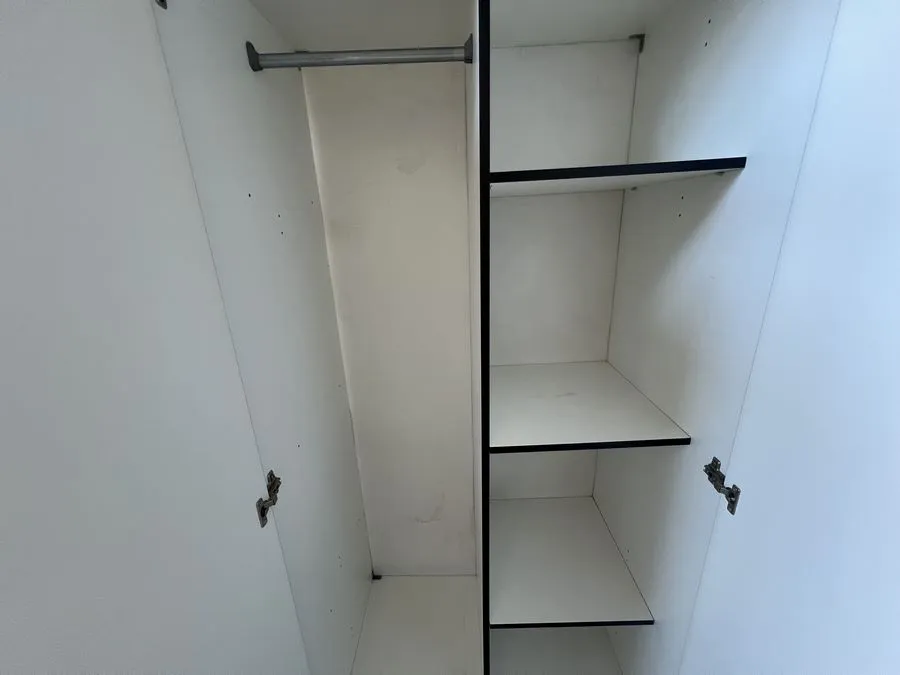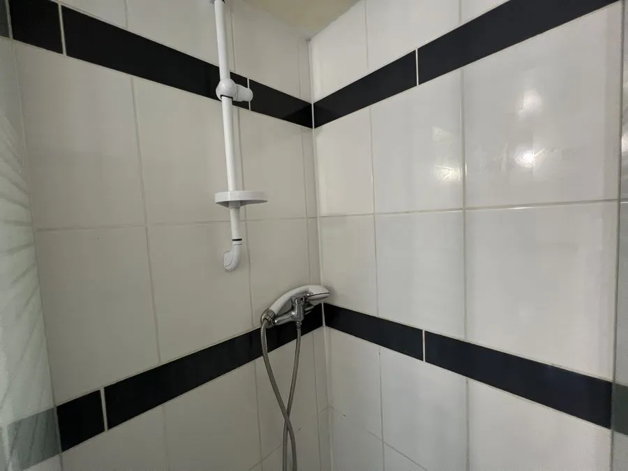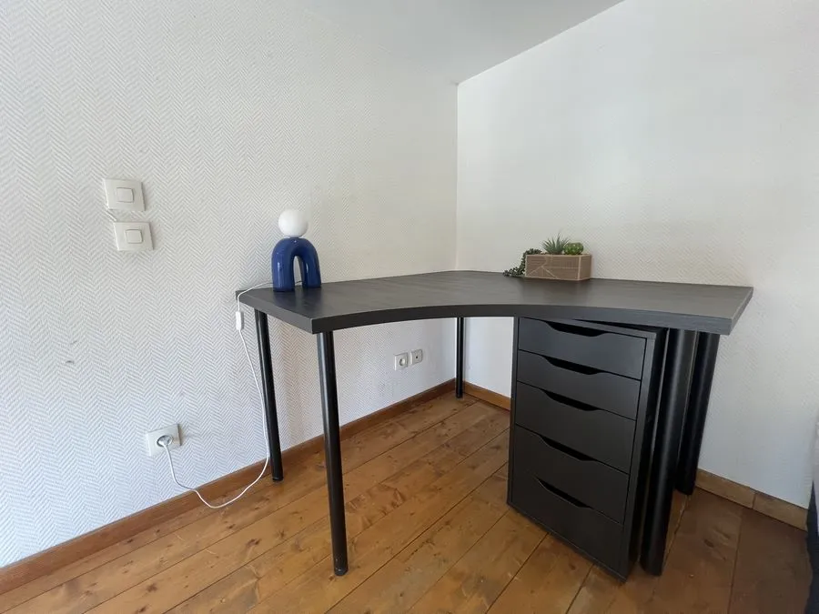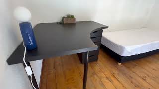 Il se compose d'une pièce à vivre carrelée avec une grande fenêtre en double vitrage avec volet. Les murs sont en fibre de verre peints en blanc. Vous trouverez une cuisine équipée carrelée avec un évier, 2 plaques électriques, un frigidaire, une hotte et des meubles de cuisine hauts et bas. La salle de douche est carrelée avec une vasque, elle possède une douche, un lavabo et un toilette. L'appartement meublé avec goà»t est composé d'un bureau, table et chaises, un lit simple, une penderie, une étagère, un meuble de rangement.