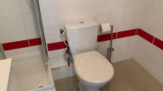 Il se compose d'une pièce à vivre carrelée et d'une grande fenêtre en double vitrage avec volet. Les murs sont en fibre de verre peints en blanc et gris. Vous trouverez une cuisine équipée carrelée avec un évier, 2 plaques électriques, un frigidaire, une hotte et des meubles de cuisine hauts et bas. La salle de douche est carrelée avec une vasque, elle possède une douche, un lavabo et un toilette. L'appartement meublé avec goà»t est composé d'un bureau, table et chaises, une étagère, un lit double, une penderie.