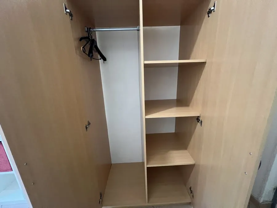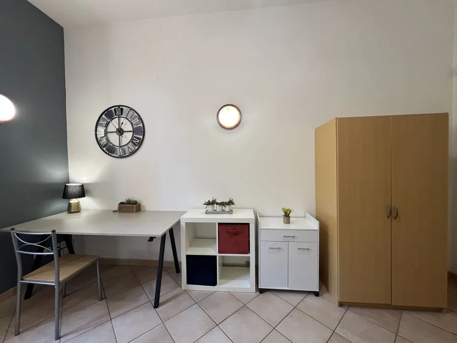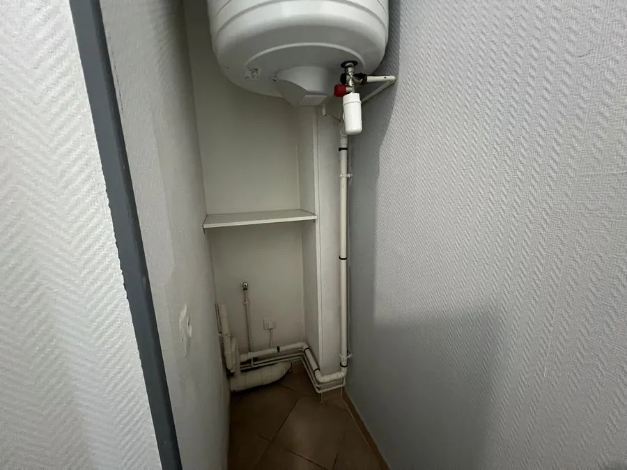 Il se compose d'une pièce à vivre carrelée, une grande fenêtre en double vitrage avec volet se trouve dans chaque pièce. Les murs sont en fibre de verre peints en blanc et gris. Vous trouverez une cuisine équipée carrelée avec un évier, 2 plaques électriques, un frigidaire, une hotte et des meubles de cuisine hauts et bas. La salle de bain est carrelée avec une vasque, elle possède une douche, un lavabo et un toilette. L'appartement meublé avec goà»t est composé d'une table et de chaises, un lit simple, rideau, une penderie.