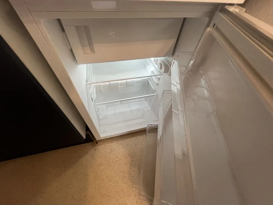 Il se compose d'une pièce à vivre carrelée avec une fenêtre en double vitrage avec volet. Les murs sont en fibre de verre peints en blanc et gris. Vous trouverez une cuisine équipée carrelée avec un évier, 2 plaques électriques, un frigidaire et des meubles de cuisine hauts et bas. La salle de bain est carrelée avec une vasque, elle possède une douche, un lavabo et un toilette. L'appartement meublé avec goà»t est composé d'une table, 2 chaises blanches, un lit simple, une penderie noir et bois, un meuble kalax blanc, une étagère murale blanche, un tableau art abstrait, un bureau noir et bois, un miroir verrière, une table de nuit noire et bois, une horloge murale et une lampe de bureau.