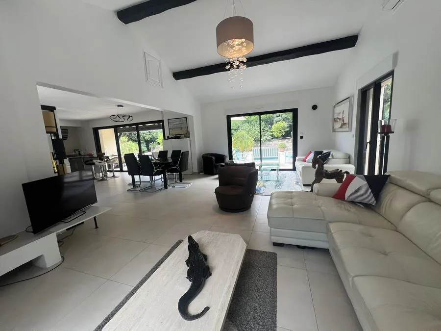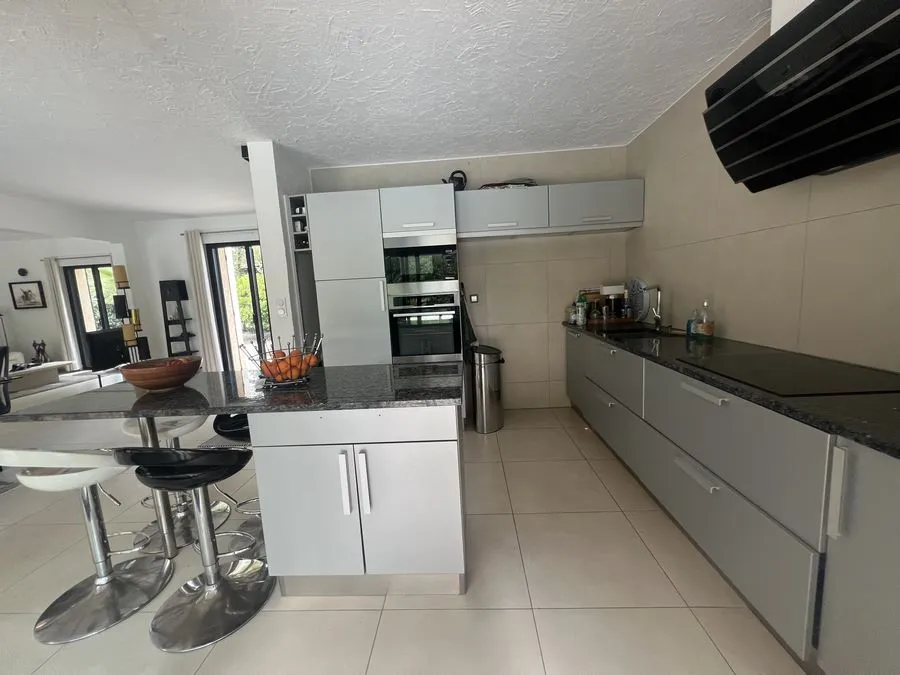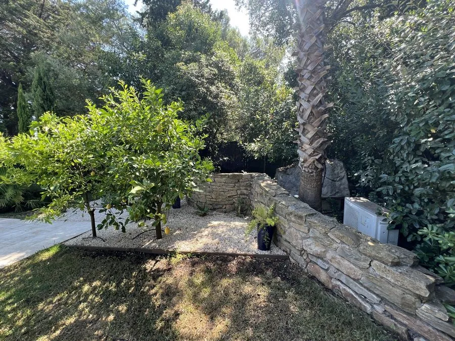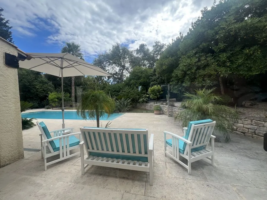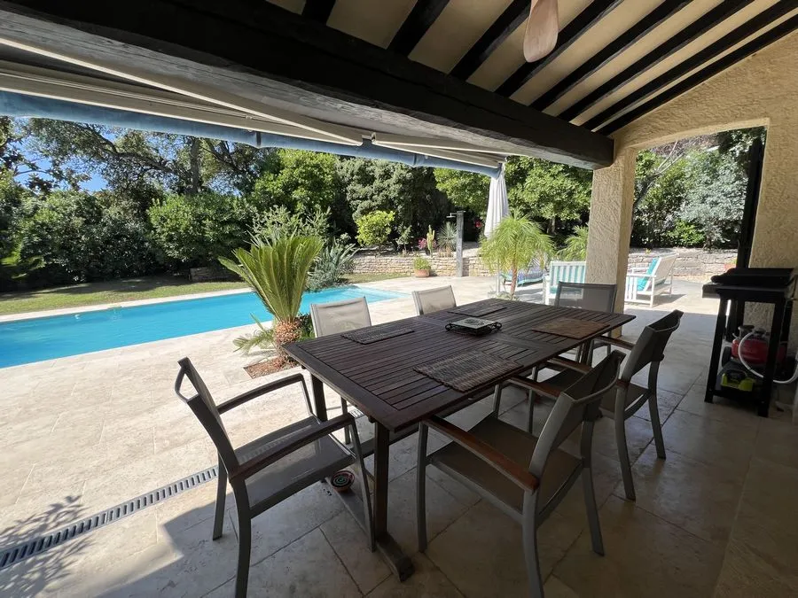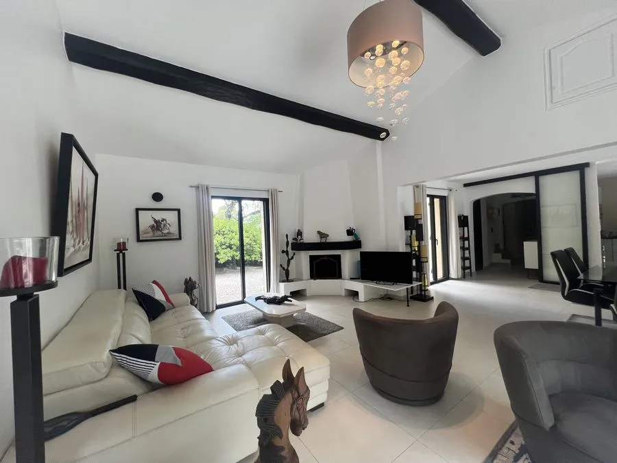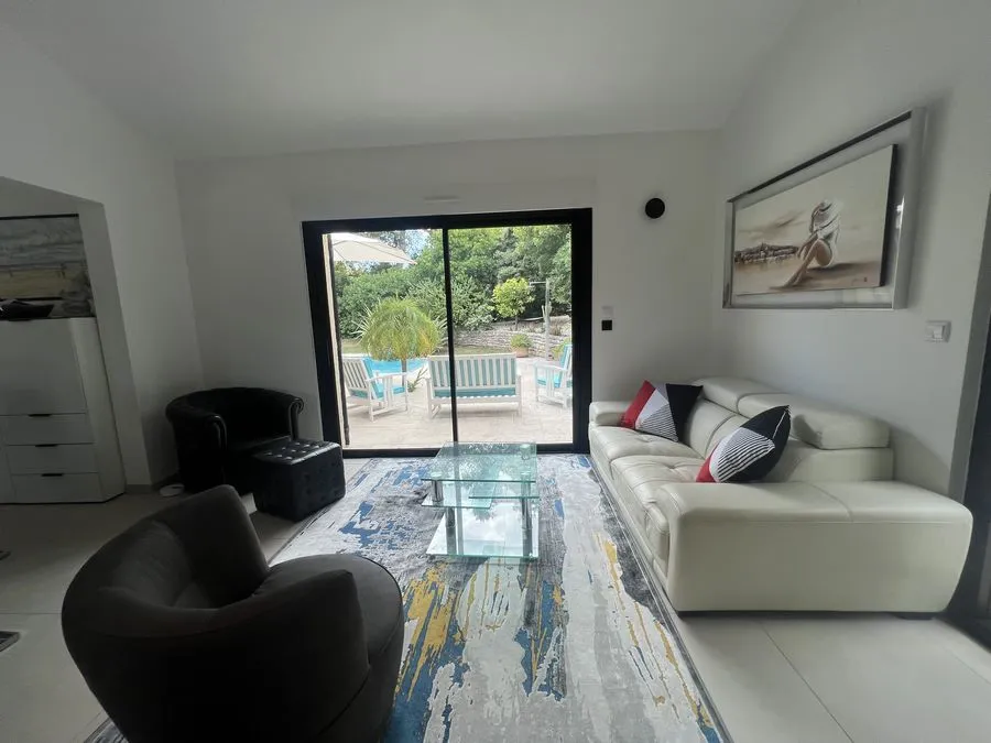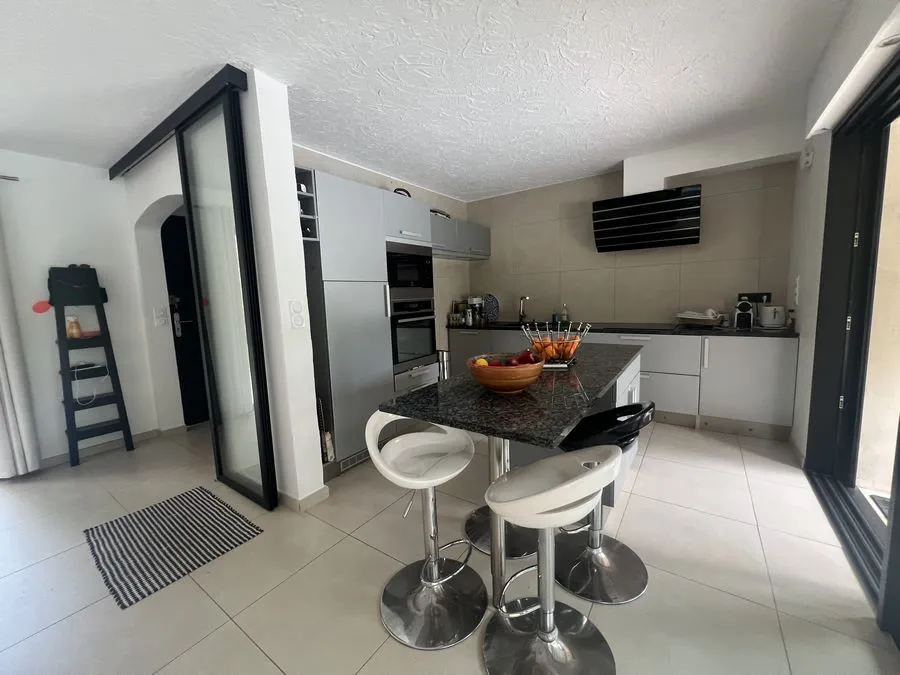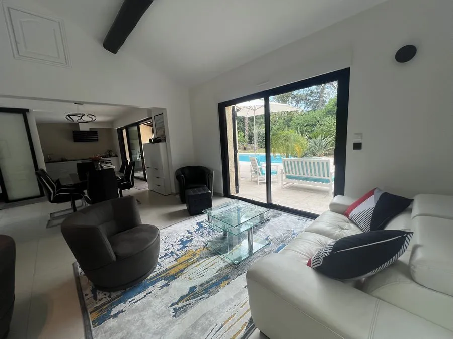 Rez de chaussée : entrée, un salon et salle à manger, cuisine équipée, une piscine, une terrasse, un salon de jardin, un barbecue, jardin clos et arboré. Petite pièce office de débarras rangement, une chambre donnant sur la piscine avec une salle de bain et toilette avec un climatiseur. Toilette au rez de chaussée à droite de l'escalier. Une chambre dîtes marocaine avec douche, un lit double 160x190 qui va être ajouté, en duplex un lit double 160x190 avec climatiseur. Une laverie avec machine à lave, grand frigo, un congélateur.