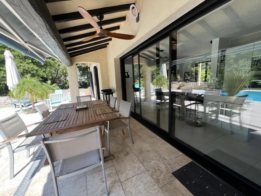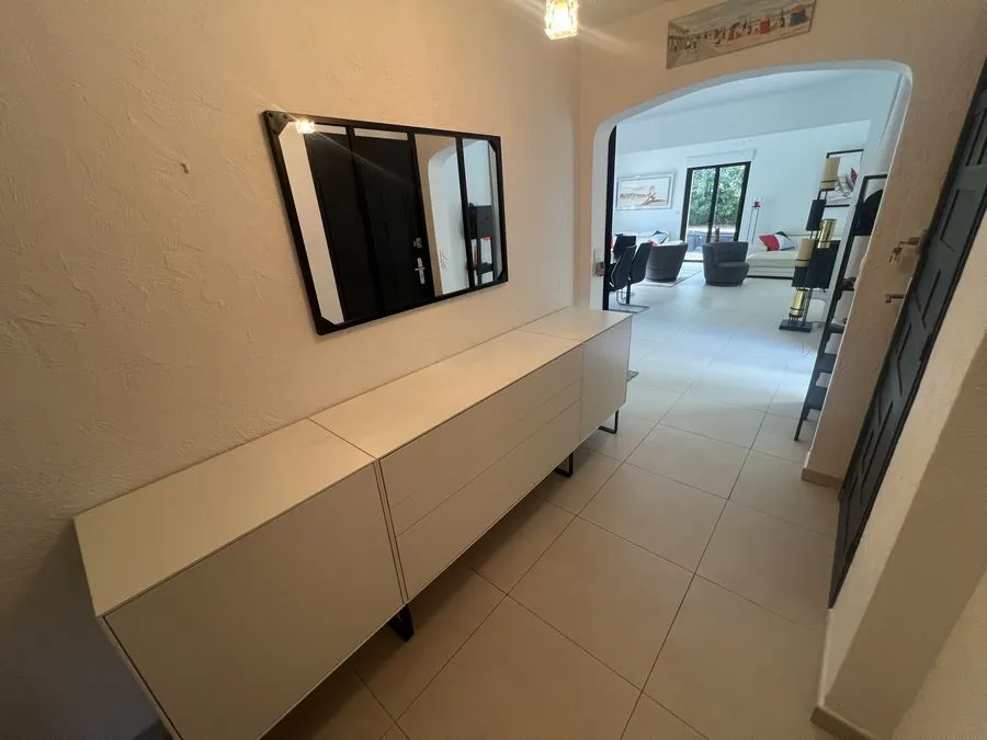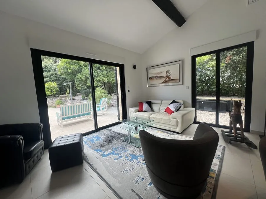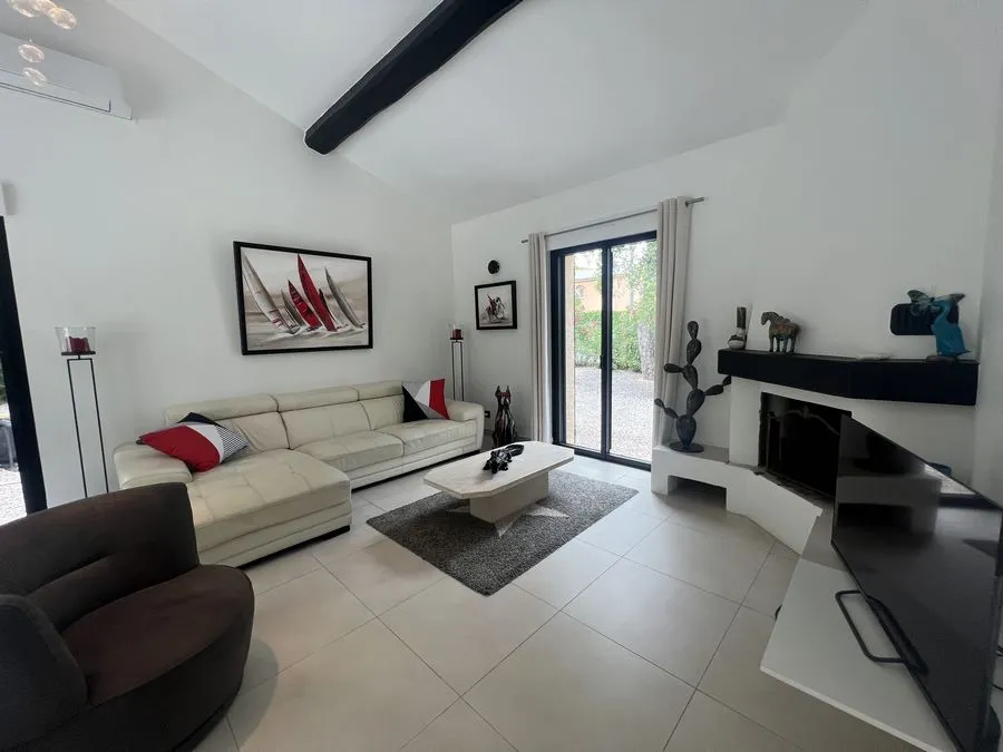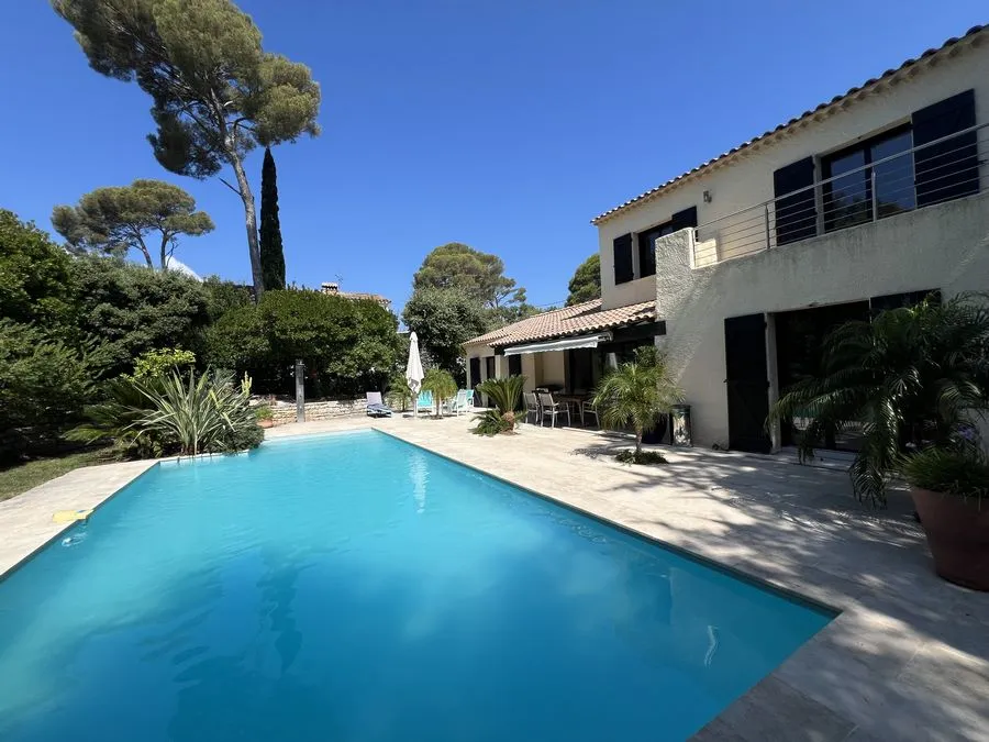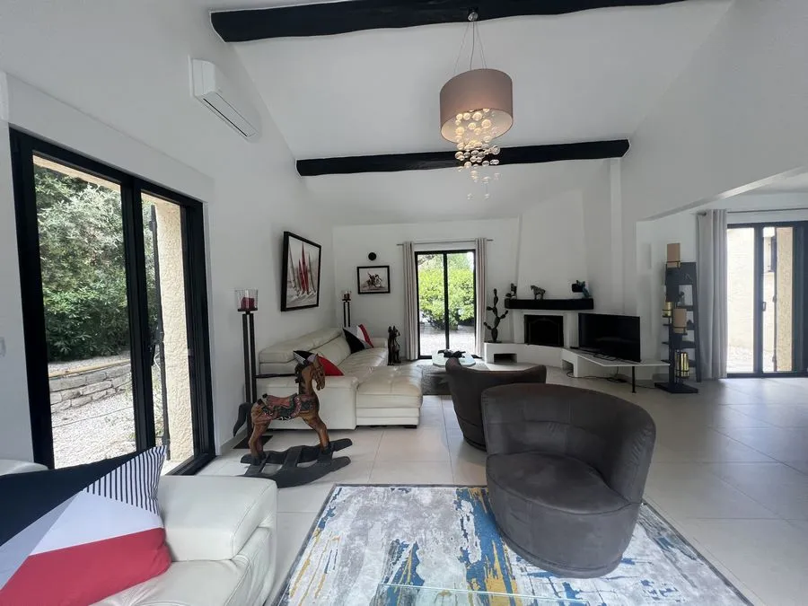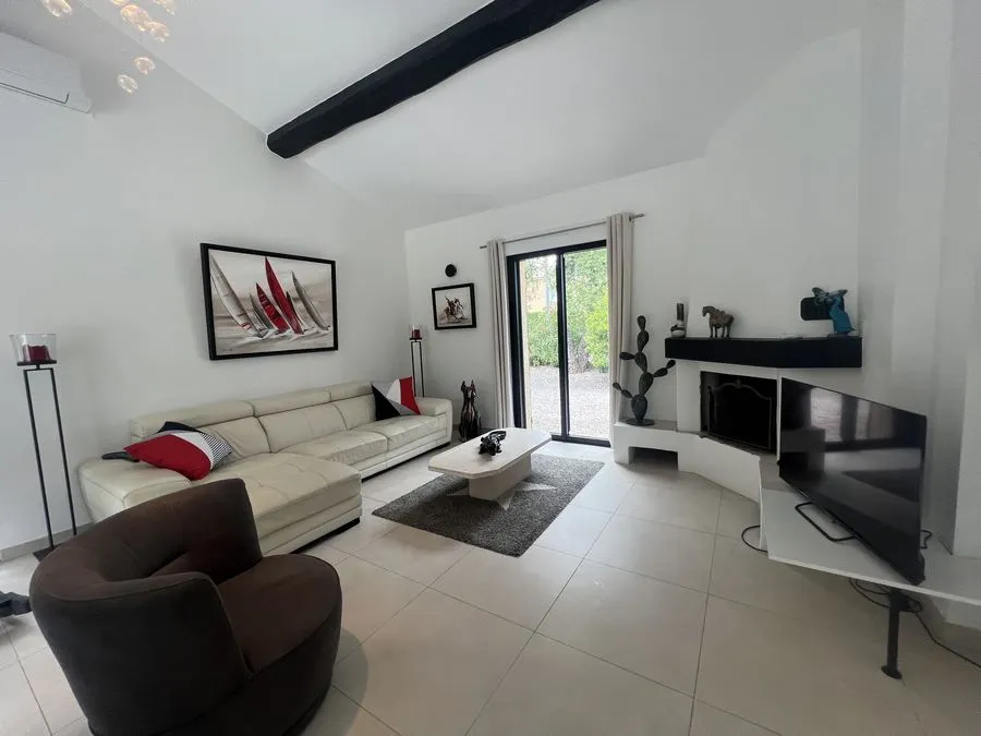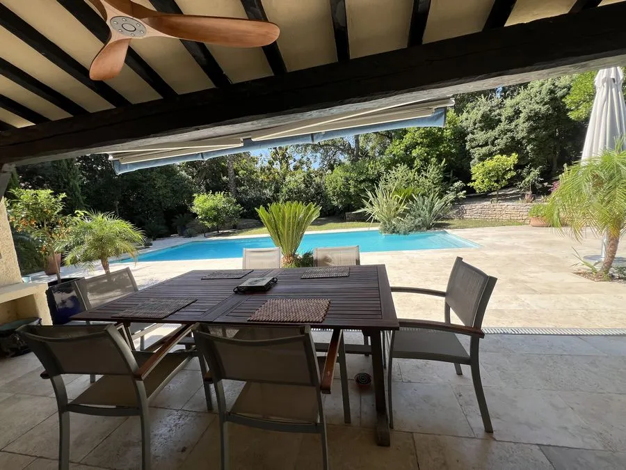 Rez de chaussée : entrée, un salon et salle à manger, cuisine équipée, une piscine, une terrasse, un salon de jardin, un barbecue, jardin clos et arboré. Petite pièce office de débarras rangement, une chambre donnant sur la piscine avec une salle de bain et toilette avec un climatiseur. Toilette au rez de chaussée à droite de l'escalier. Une chambre dîtes marocaine avec douche, un lit double 160x190 qui va être ajouté, en duplex un lit double 160x190 avec climatiseur. Une laverie avec machine à lave, grand frigo, un congélateur.