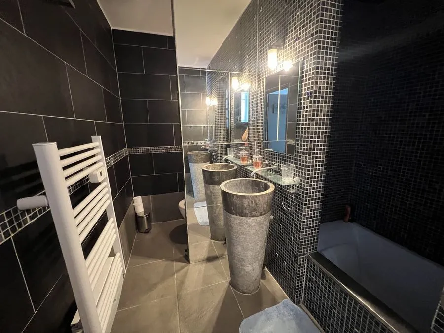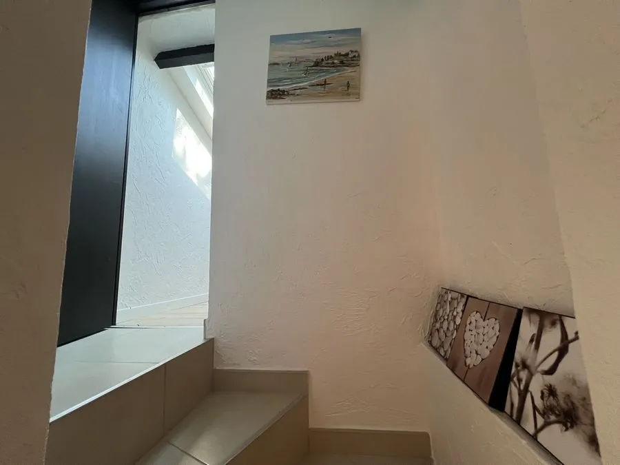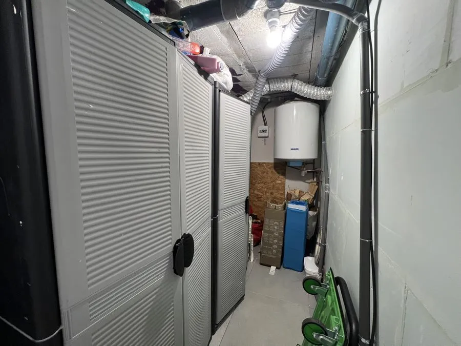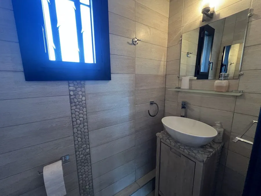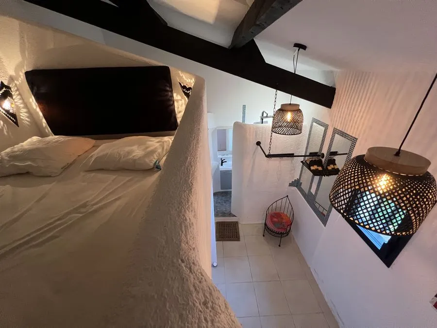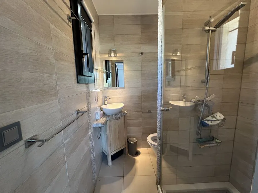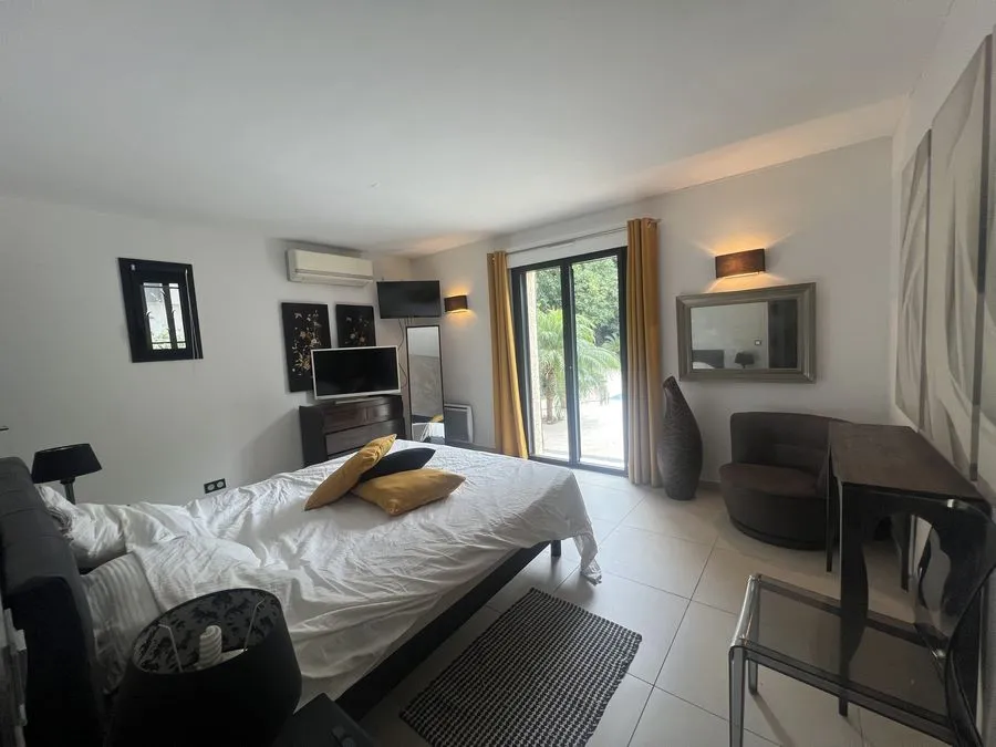 En sous-sol : toilette broyeur, une chambre avec un lit double 160x190, salle de douche entièrement carrelé, climatiseur.