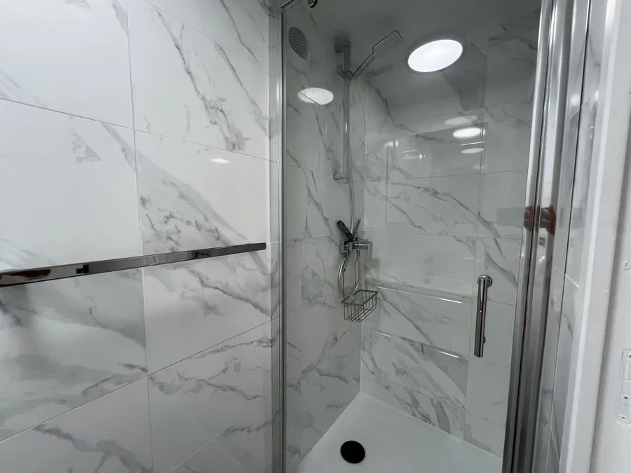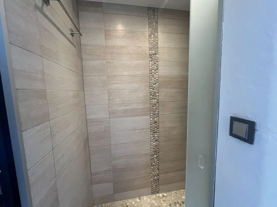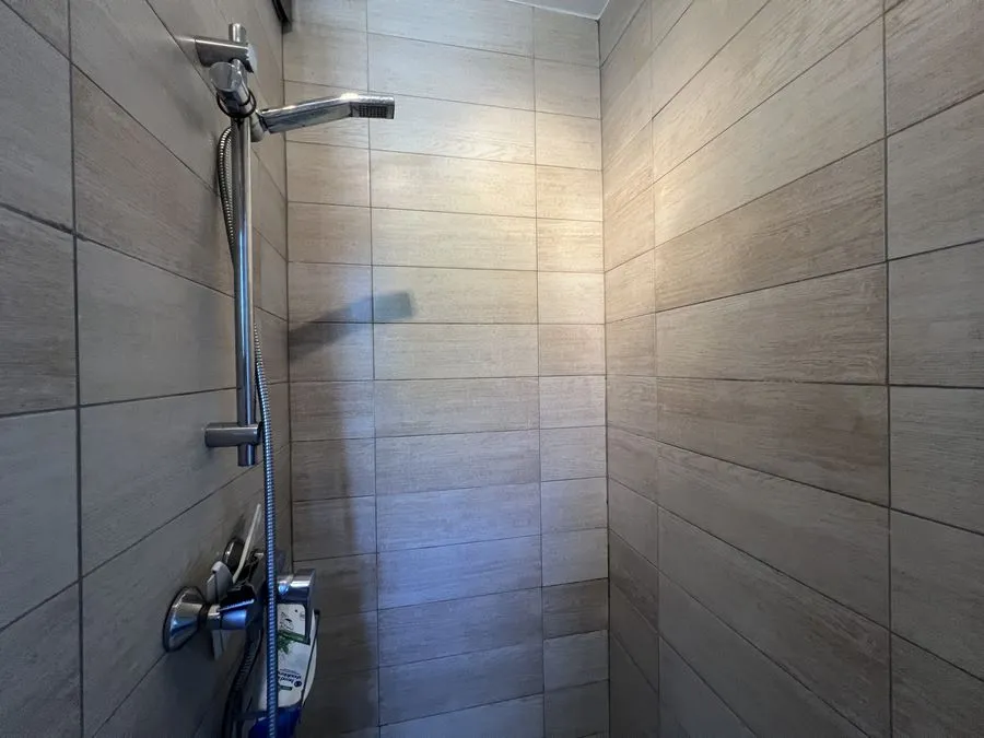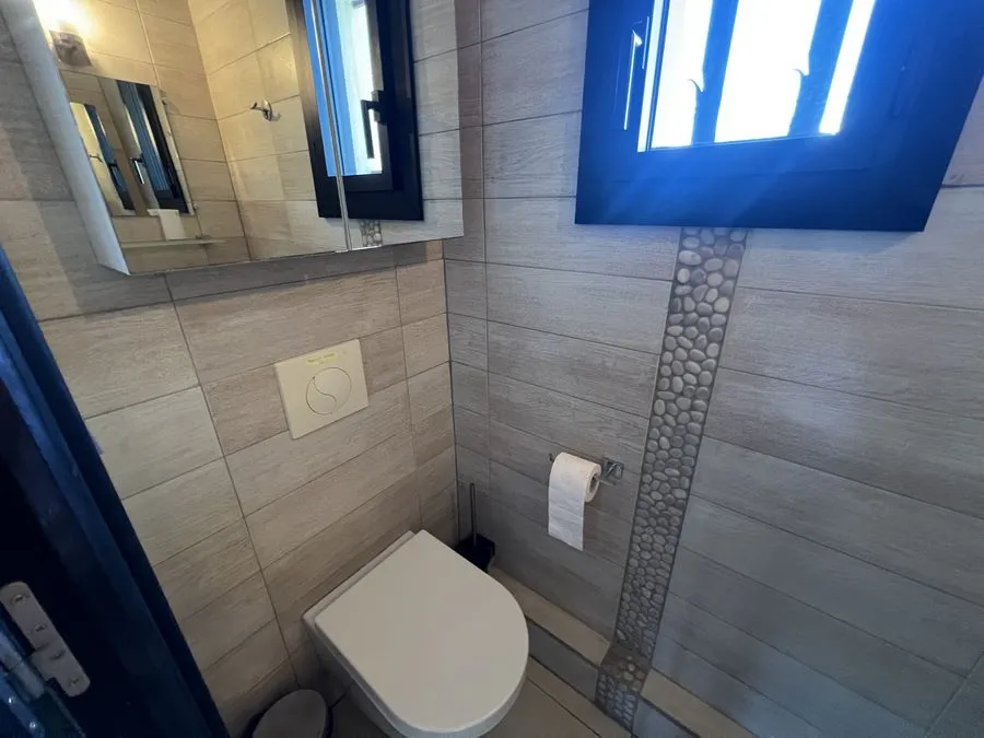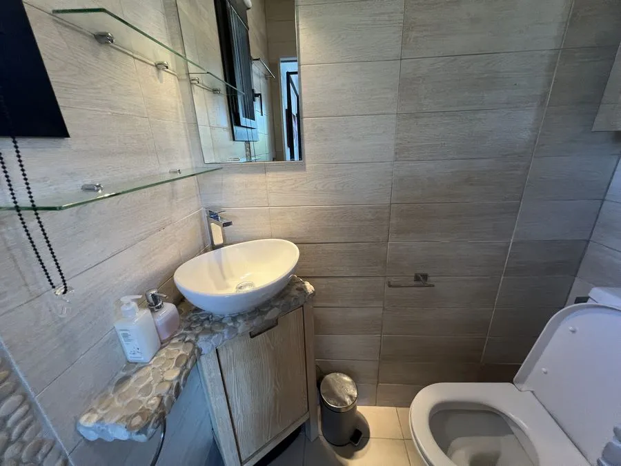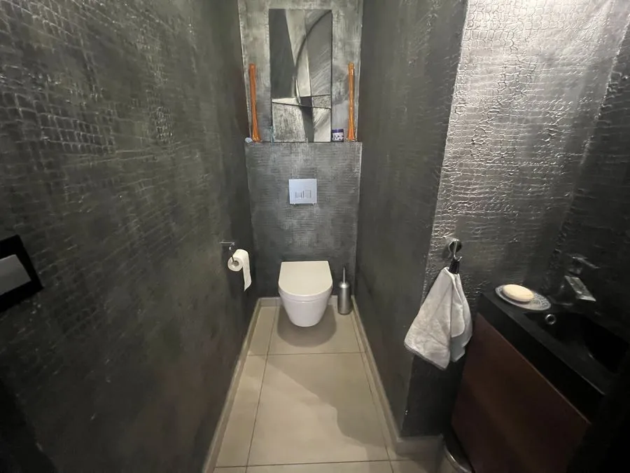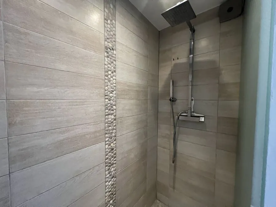 En sous-sol : toilette broyeur, une chambre avec un lit double 160x190, salle de douche entièrement carrelé, climatiseur.