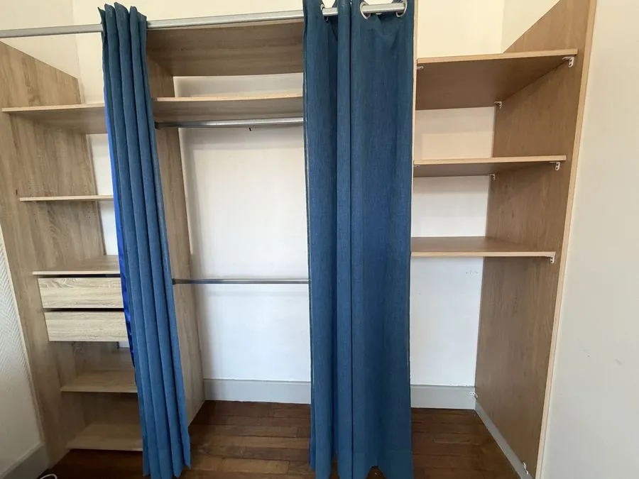 Il se compose d'une entrée carrelée, d'une pièce à vivre et d'une chambre avec parquet ainsi que 2 fenêtres en double vitrage avec volets. Les murs sont en fibre de verre peints en blanc. Vous trouverez une cuisine équipée carrelée avec un évier, 4 plaques électriques, un frigidaire, une hotte et des meubles de cuisine hauts et bas. La salle de douche est carrelée avec une vasque, elle possède une douche et un lavabo. L'appartement est meublé avec goà»t d'un meuble d'entrée, un miroir, table et chaises, un canapé gris anthracite, un meuble télé, des rideaux, un dressing, une table de bar, 2 tabourets. Le chauffage central gaz est compris.