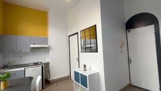 Il se compose d'une pièce à vivre entièrement carrelée. Les murs sont en fibre de verre peints en blanc et bleu. Ce studio est muni de 3 fenêtres en PVC double vitrage avec volet, dont une dans la salle de douche. Vous trouverez une kitchenette équipée carrelée avec un évier, 2 plaques électriques, un frigidaire, une hotte et des meubles de cuisine hauts et bas. La salle de douche est carrelée avec une vasque, elle possède une douche, un lavabo et un toilette. L'appartement meublé avec goà»t est composé d'un lit simple, un bureau, un meuble kalax, une table, 2 chaises scandinaves blanches, un miroir verrière cubique, une grande penderie blanche, une kitchenette équipée, une paire de rideaux, une table de nuit blanche et une horloge murale.