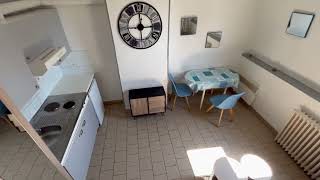 Il se compose d'une pièce à vivre entièrement carrelée. Les murs sont en fibre de verre peints en blanc et gris. Ce duplex est muni d'une fenêtre en PVC double vitrage avec volet dans la pièce de vie et d'un velux avec volet dans la chambre. Vous trouverez une kitchenette équipée carrelée avec un évier, 2 plaques électriques, un frigidaire, une hotte et des meubles de cuisine hauts et bas. La salle de douche est carrelée avec une vasque, elle possède une douche, un lavabo et un toilette. L'appartement meublé avec goà»t est composé d'un lit double, un bureau, une penderie, kitchenette équipée, rideaux, un meuble de rangement bois et noir, un fauteuil gris 2 places, une table basse bois et noire, un luminaire bois et noir, une table de nuit bois et noire.