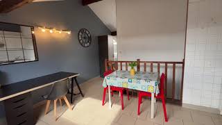 Il se compose d'une pièce à vivre entièrement carrelée. Les murs sont en fibre de verre peints en blanc et gris. Ce loft est muni de 2 velux en PVC double vitrage avec store. Vous trouverez une kitchenette équipée carrelée avec un évier, 2 plaques électriques, un frigidaire, une hotte et des meubles de cuisine hauts et bas. La salle de douche est carrelée avec une vasque, elle possède une douche, un lavabo et un WC. L'appartement meublé avec goà»t est composé d'un lit double, un bureau, une penderie, kitchenette équipée, rideaux, un meuble de rangement, un clic-clac rouge 3 places, un tapis rouge, une table basse noire, un meuble TV.
